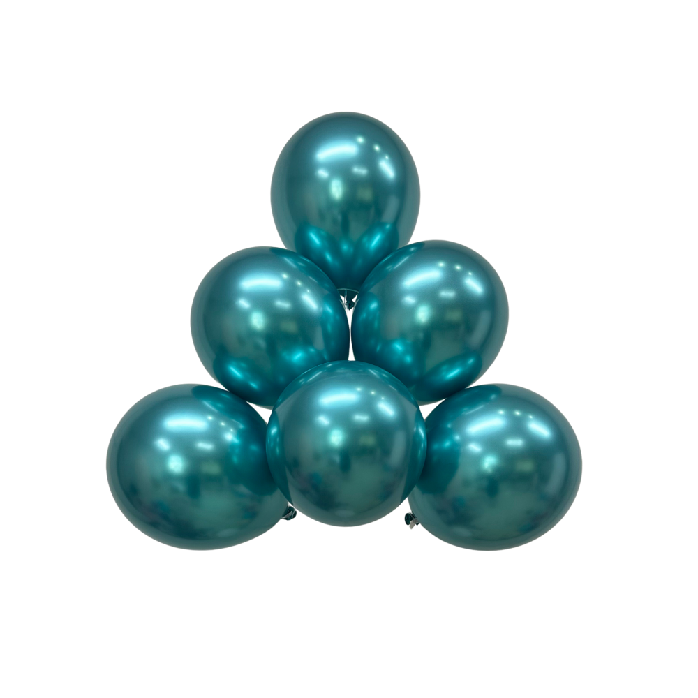 Haz lucir tus eventos con nuestros globos de látex Color Azul Pavo Real de la categoría Chrome. Cada bolsa contiene globos ecológicos perfectos para cualquier ocasión.