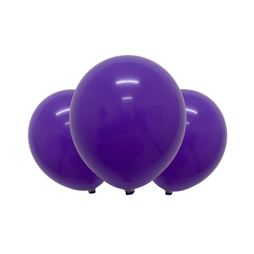Haz lucir tus eventos con nuestros globos de látex Color Morado. Cada bolsa contiene globos ecológicos perfectos para cualquier ocasión.